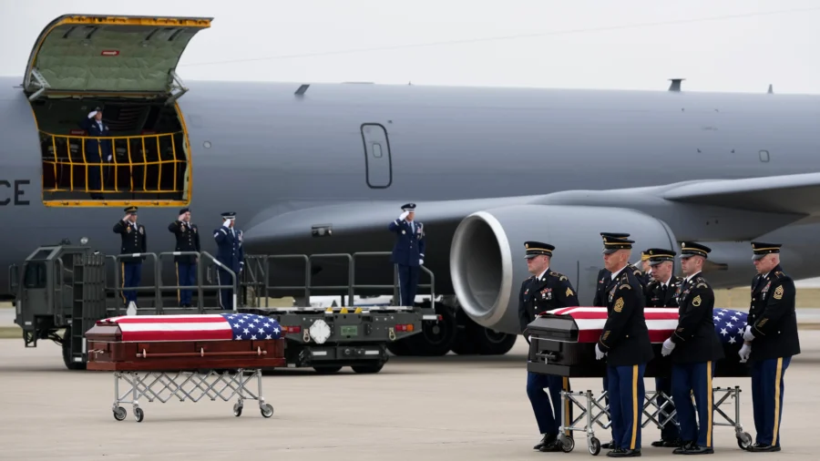 DES MOINES, Iowa—The remains of two Iowa National Guard members killed in an attack in the Syrian desert were welcomed back to Des Moines on Wednesday, marking a solemn Christmas Eve for their grieving families.