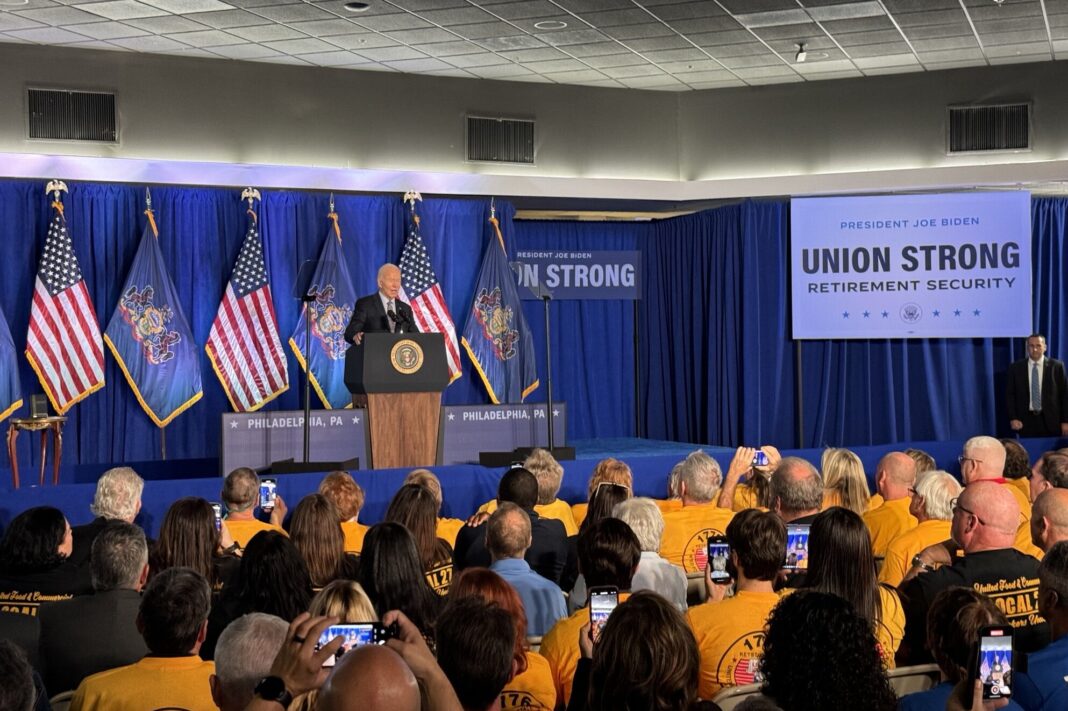 “Before the Butch Lewis Act became the law of the land, union workers and retirees faced cuts of up to 70 percent of their retirement benefits,” Biden said. “Because of what [Vice President] Kamala [Harris] and I did in Congress … pensions are protected.” This point was underscored by other speakers at the event, which included Acting Labor Secretary Julie Su, Pennsylvania Teamsters President William Hamilton, and Rep. Brendan Boyle (D-Pa.).