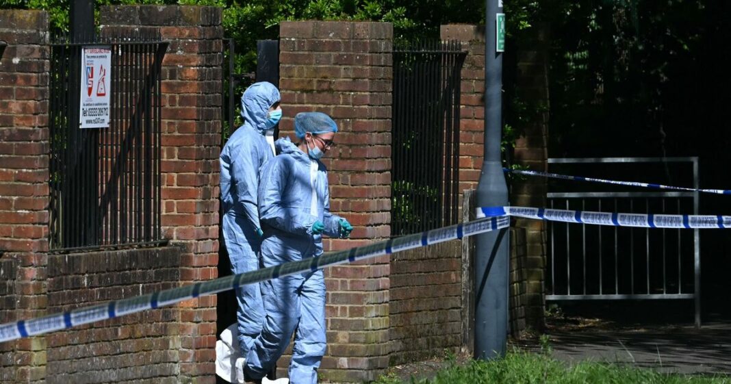The building is close to a school and children’s playground, and police were seen searching a black SUV nearby on Sunday morning.