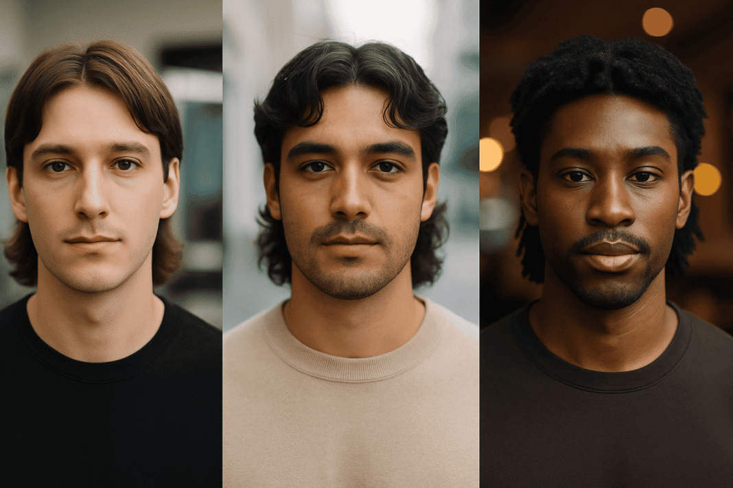 Oval, oblong, or heart-shaped faces with medium density hair. The look maintains a natural, effortless aesthetic.