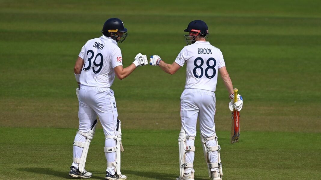 Jamie Smith [184*] and Harry Brook [158] both hit huge centuries in a partnership of 303 but England still fell 180 runs short of India’s first innings total after a record-breaking SIX batters were out for ducks.