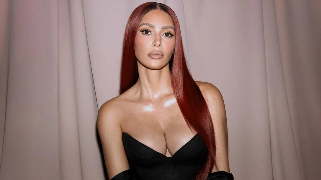 Kim, who launches SKKN this week, also sported cream lipstick and fiery red hair rather than her usual dark locks.