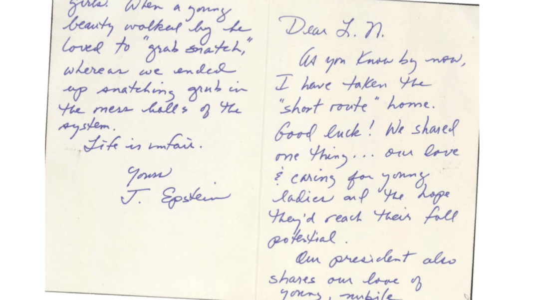 Included in the latest batch from the DOJ is a handwritten letter Epstein wrote to convicted sex offender Larry Nassar from the Manhattan Correctional Center that appears to reference Trump. In the letter, which appears similar to one described in a 2023 Associated Press report, Epstein says, “Our president shares our love of young, nubile girls.” Trump was president when the letter was written.
