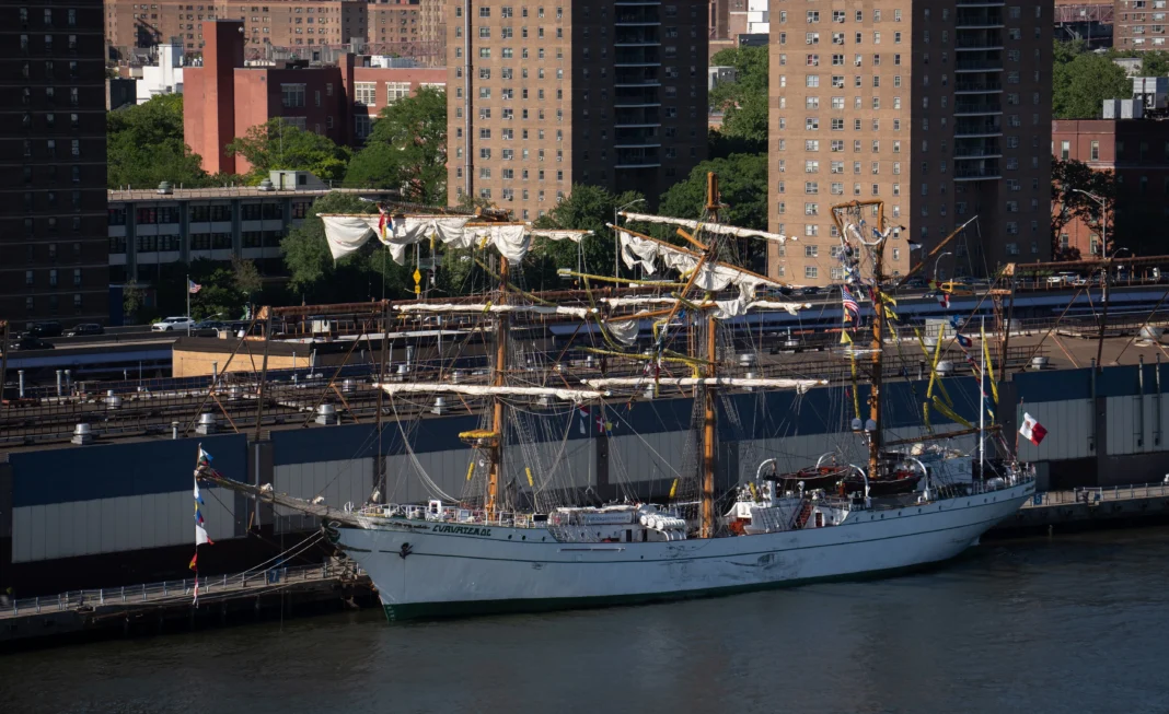 The Cuauhtémoc arrived on May 13 at noon and docked at Pier 17, where it remained stationed for about three days.