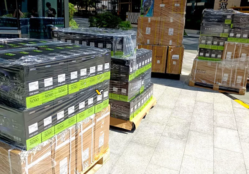 A photo recently posted on Chinese social media appears to show several pallets somewhere in China holding dozens of MSI-branded RTX 5090 boxes.