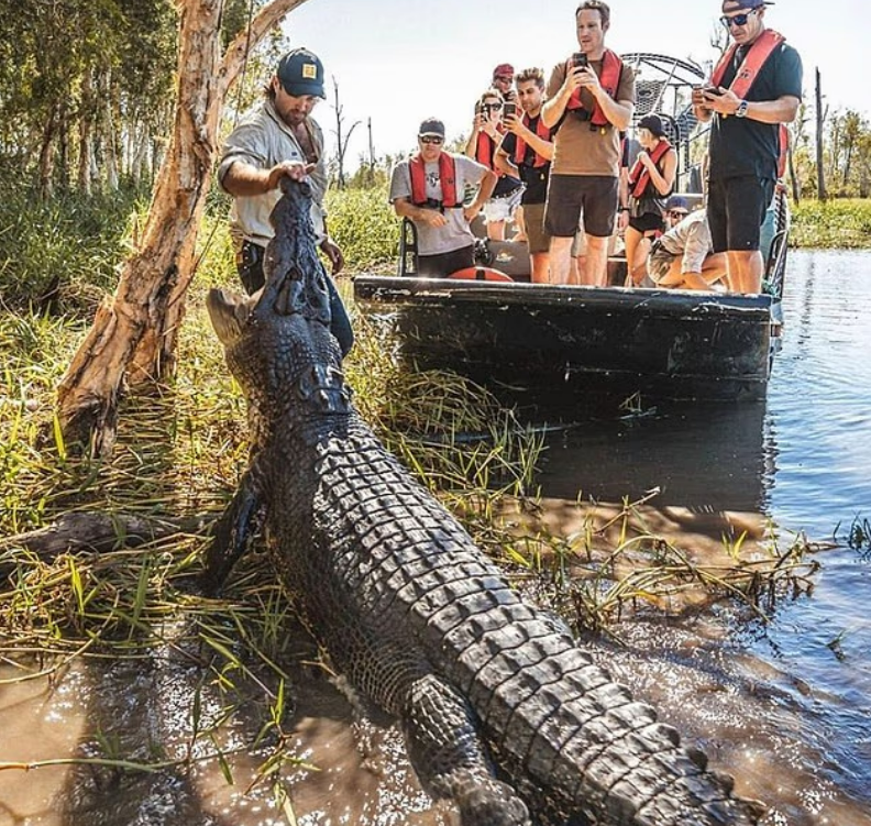 The group had been collecting crocodile eggs in Australia‘s Northern Territory, when their chopper ran out of fuel and fell from the air.