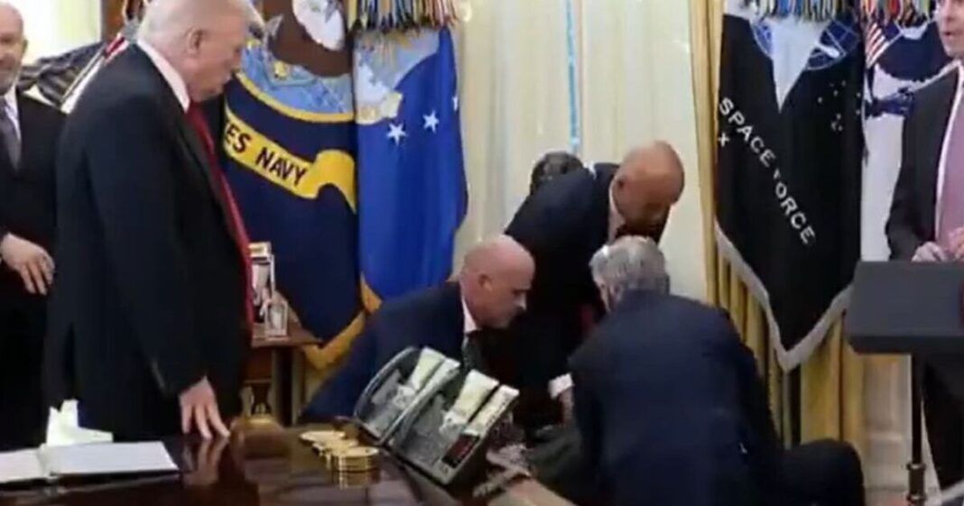 The Oval Office has descended into chaos after pharmaceutical executive Gordon Findlay collapsed in front of Donald Trump. The Novo Nordisk exutive collapsed as members of the Trump administration were announcing a new deal for weight-loss medications.