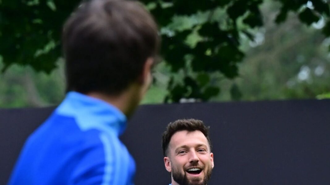 Sam, 32, was spotted smiling as he looked over at Louis, 33, as they got to work on the pitch.