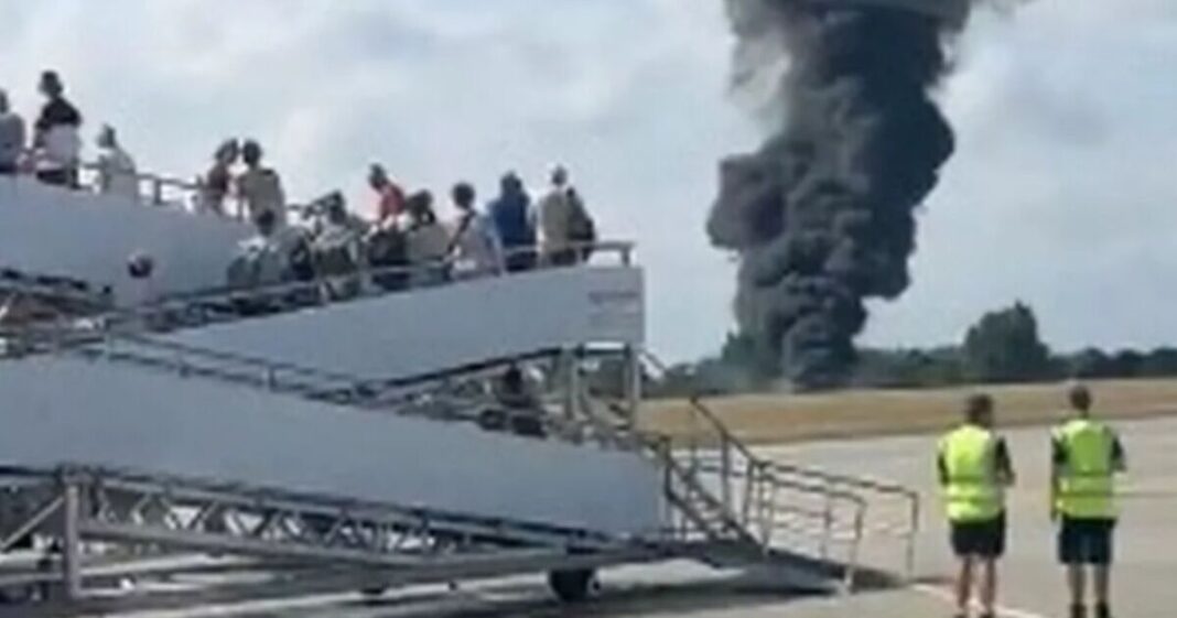 John Johnson, who was at the airport with his children and wife, said he saw a “big fireball” after the plane crashed “head first into the ground”.