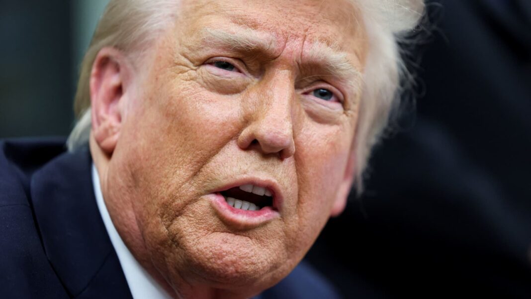 President Donald Trump speaks while signing executive orders in the Oval Office of the White House in Washington, Feb. 10, 2025.