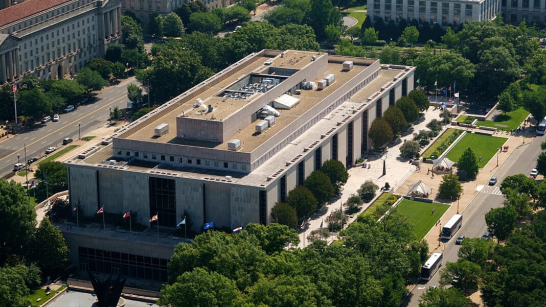 The Smithsonian Institution’s National Museum of American History is seen from the Washington Monument on June 19, 2025 in Washington, DC.