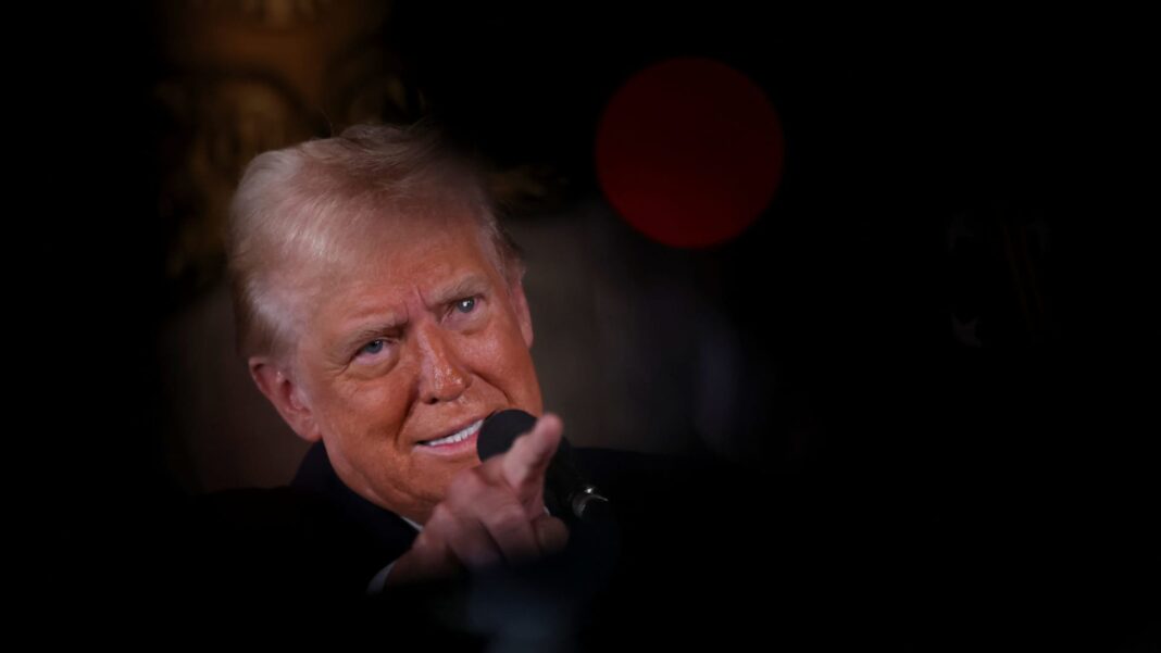 U.S. President-elect Donald Trump gestures as he makes remarks at Mar-a-Lago in Palm Beach, Florida, U.S. Jan. 7, 2025.