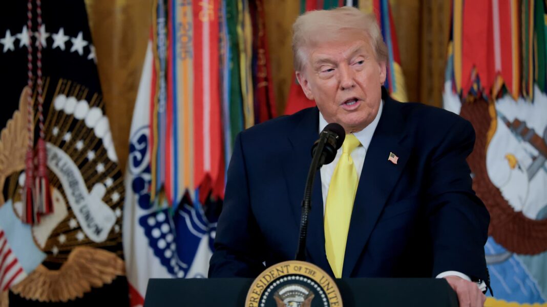 U.S. President Donald Trump speaks during an event to honor recipients of the Purple Heart in the East Room of the White House on August 07, 2025 in Washington, DC.