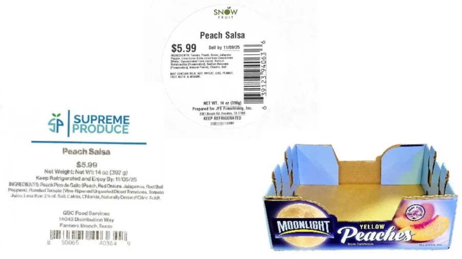 Snow Fruit brand peach salsa, distributed by Houston-based JFE Franchising Inc., also carries a recall. The affected product includes a 16-ounce plastic clam-shell container of peach salsa retailing for $5.99 to $6.99 at Kroger, according to the Nov. 4 FDA announcement. The company initiated its voluntary recall on Nov. 3 “in alignment with our commitment to consumer safety and regulatory compliance,” the company said in a statement.
