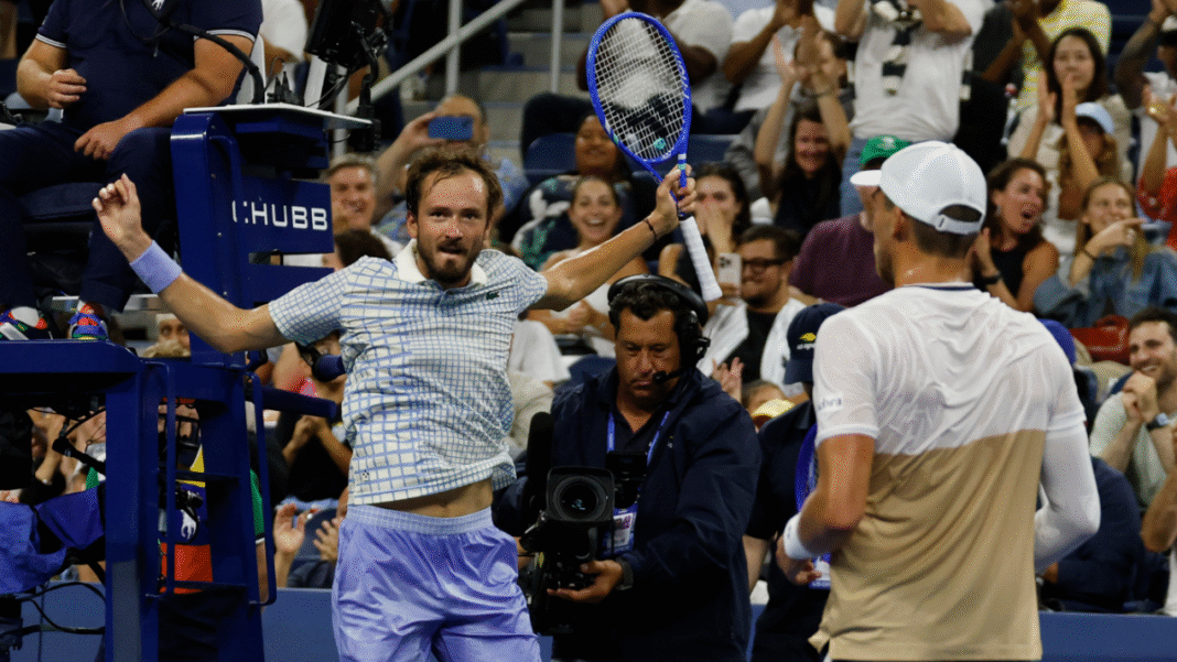 While Bonzi celebrated his victory, Medvedev took it out on his racket — and a US Open bench.